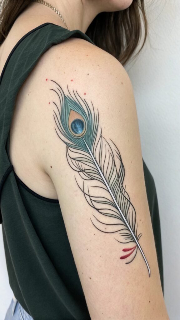 By keeping the design simple, you can showcase the beauty of the peacock feather in a way that’s both understated and eye-catching.