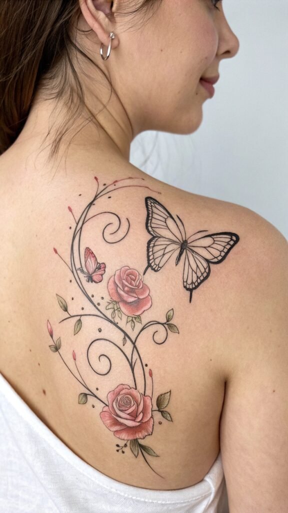 Butterflies fit almost anywhere—your back, ankle, or even your hand. They’re small, so they don’t hurt much to get. Artists love making them because the thin lines show off their skills. You can make it your own by picking a size or spot you like. Every time you see it, you’ll feel light and happy. Isn’t that cool?