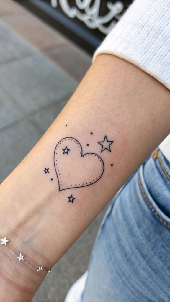 Think of a tiny heart on your wrist. It’s just a thin outline, but it’s so pretty! Or maybe a heart with an arrow on your arm—it’s playful and fun. The thin lines make it look delicate, not big and bold. You can add initials inside if it’s for someone special. That makes it extra meaningful.