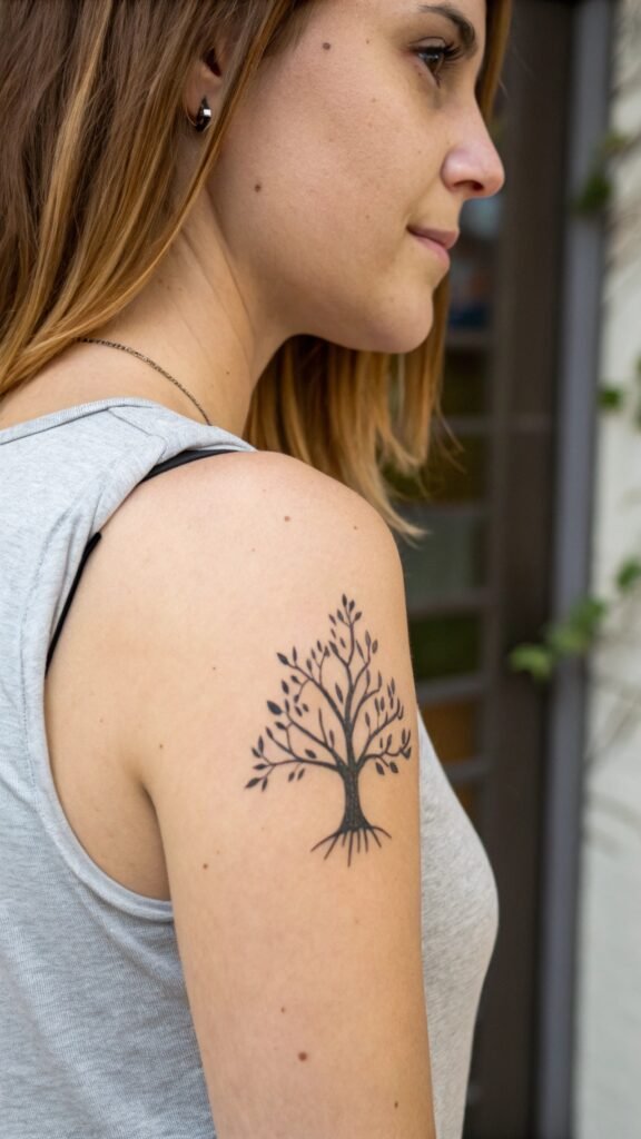 Trees fit on your arm, ankle, or neck. They’re quick to draw, so they don’t take much time. Plus, they heal fast because they’re small. You can pick a big tree or a tiny one—it’s up to you! Every time you look at it, you’ll feel strong and alive. Isn’t that exciting?